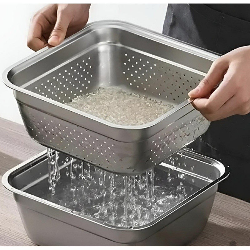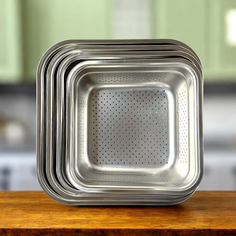 این سرویس آبکش استیل چهارعددی مربعی یونیک لایف یک انتخاب ایدهآل برای شستشوی برنج، سبزیجات و انواع مواد غذایی در آشپزخانه است. جنس بدنه تمام آبکشها از استیل ضدزنگ با کیفیت بالا ساخته شده ، بنابراین دوام طولانیمدت محصول کاملاً تضمین شده است. این مجموعه شامل چهار عدد آبکش در سایزهای 26،28،30 و 32 سانتیمتر بوده و به دلیل طراحی استاندارد، بهراحتی داخل یکدیگر قرار میگیرند تا فضای کمی از کابینت یا آشپزخانه شما را اشغال کنند. طراحی مربعی و مدرن این آبکشها، فضای بیشتری برای شستشو فراهم کرده و نسبت به مدلهای گرد، کاربردیتر و جادارتر هستند. استیل براق و چشمنواز این محصول جلوه زیبایی به آشپزخانه میبخشد و کیفیت ساخت بالای آن توجه هر کاربری را جلب میکند. برند یونیک لایف از نامهای معتبر در حوزه لوازم آشپزخانه است و همواره محصولات باکیفیت و مقاوم تولید میکند. این ست چهارپارچه کاملاً ضدزنگ بوده و در برابر رطوبت و شستشوی مداوم مقاوم است، تغییر رنگ نمیدهد و تمیز کردن آن نیز بسیار آسان است. ابعاد مناسب هر چهار آبکش باعث میشود بهراحتی در سینک ظرفشویی قرار بگیرند و استفاده روزمره از آنها راحت و سریع باشد. این سرویس آبکش مربعی یونیک لایف یک ابزار کاربردی، بادوام و زیبا برای هر آشپزخانهای است که علاوه بر کارایی بالا، نظم و جلوهای خاص به فضای آشپزی شما میبخشد.