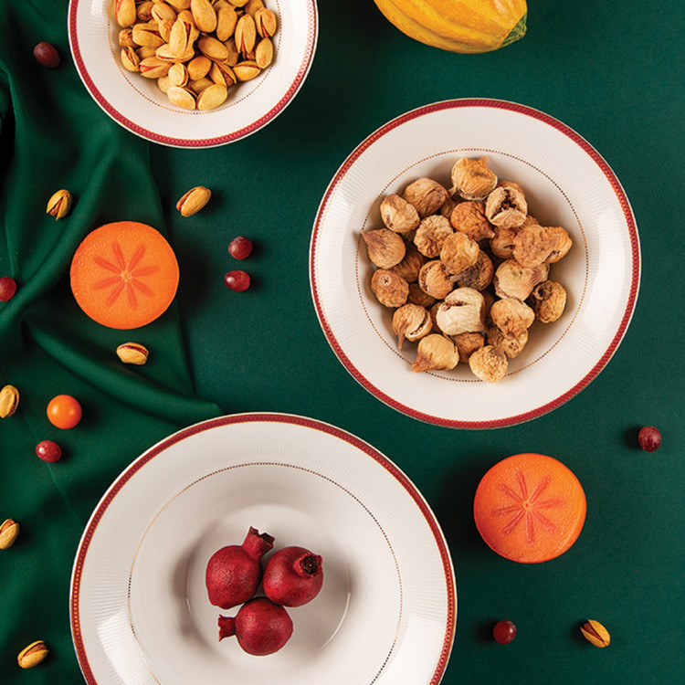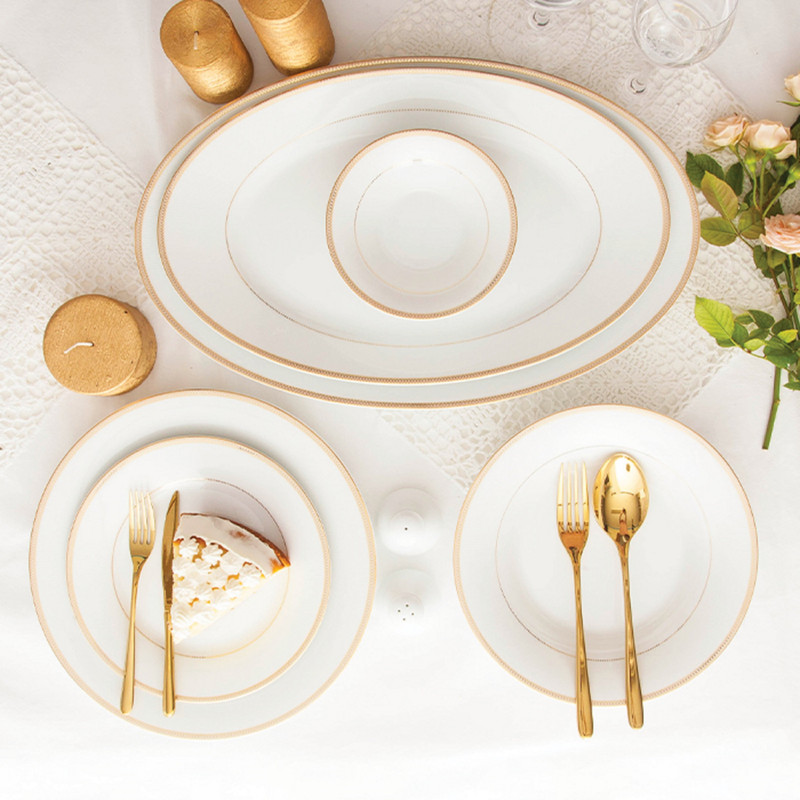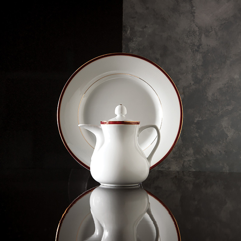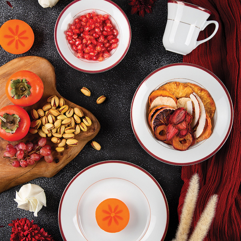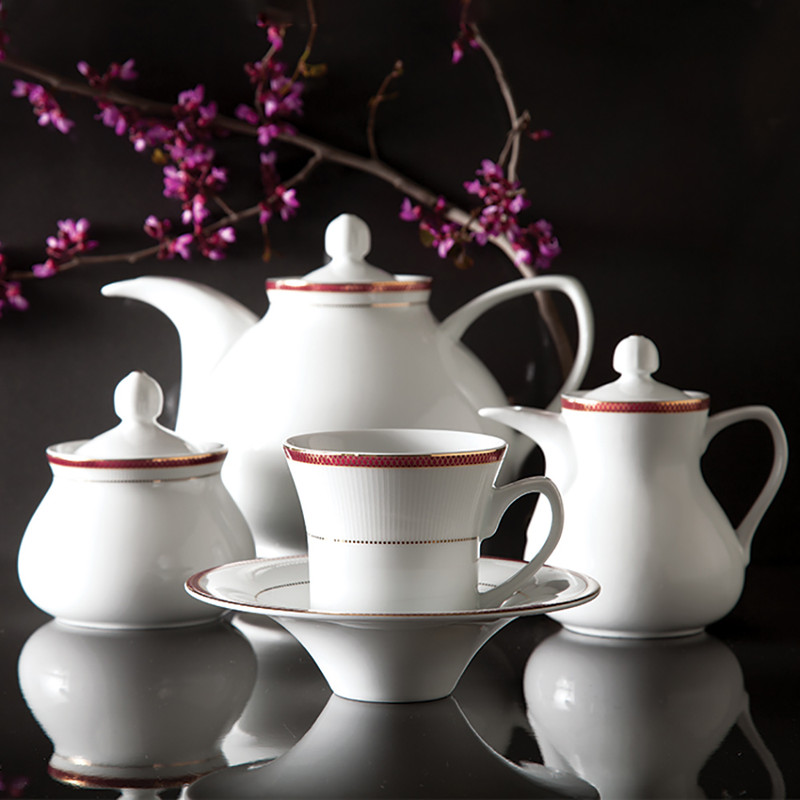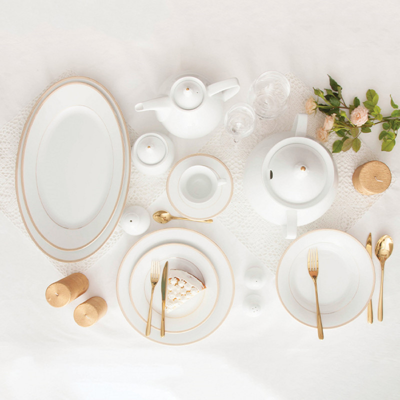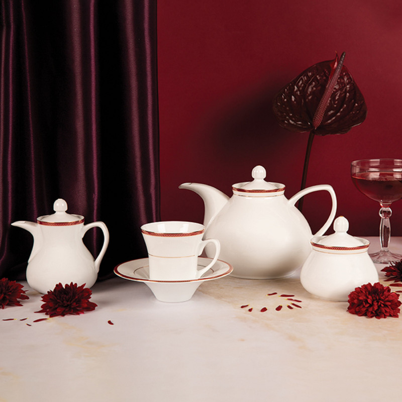 اقلام سرویس: سوپخوری , دیس , بشقاب غذاخوری , بشقاب خورشخوری , پیشدستی , سالادخوری , پیاله , نمکپاش و فلفلپاش , قندان , قوری چایخوری , فنجان , نعلبکی , شیرخوری