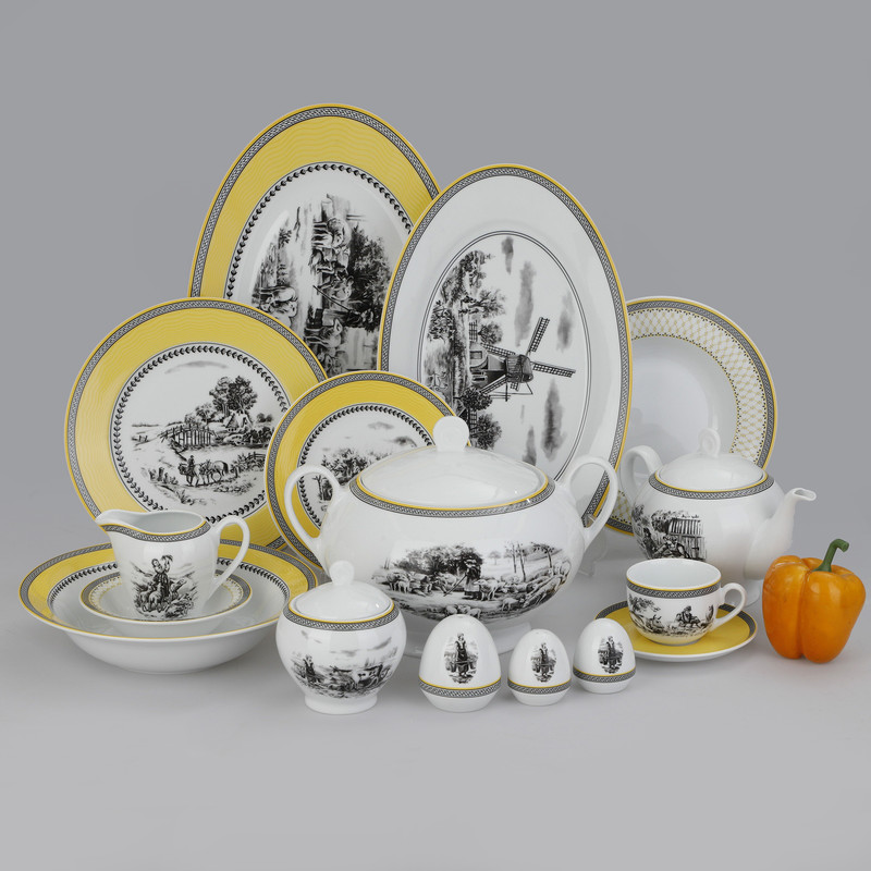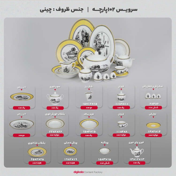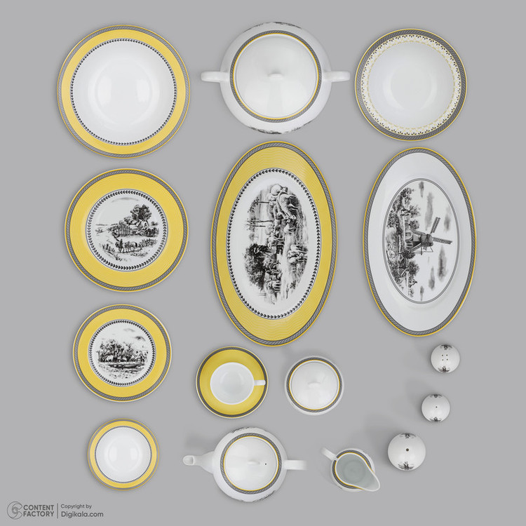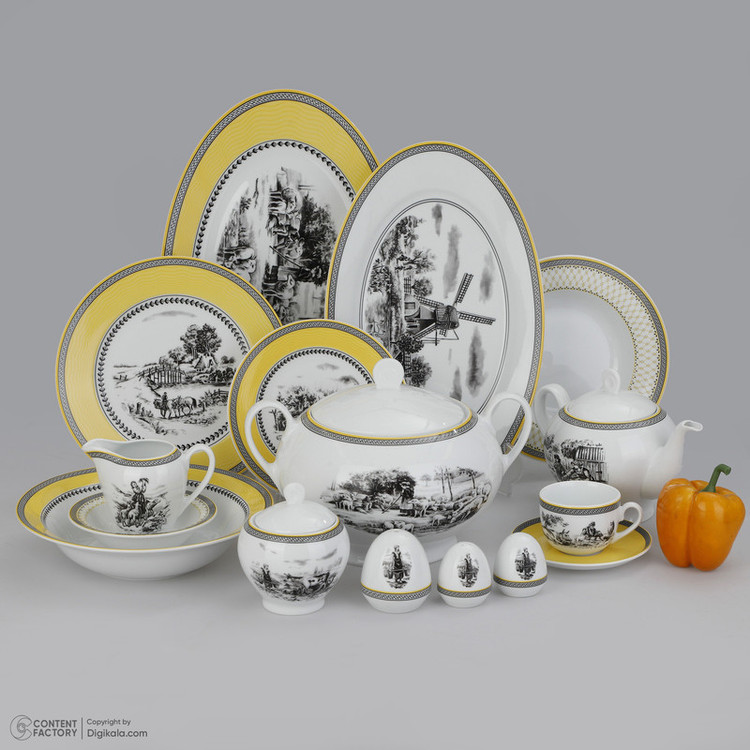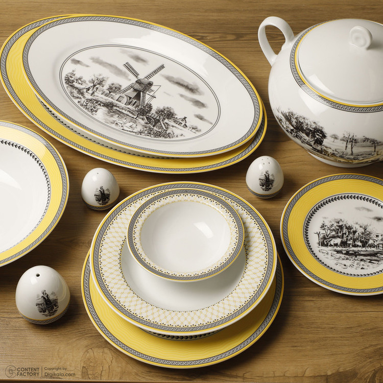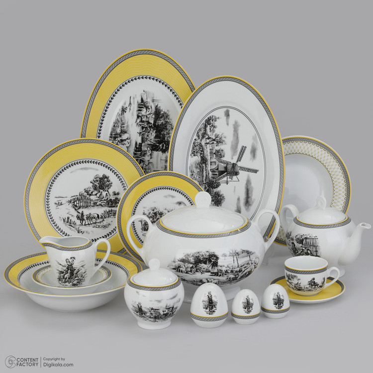 سرویس چینی 102 پارچه غذا خوری چینی زرین ایران سری ایتالیا اف مدل ویلیج درجه یک