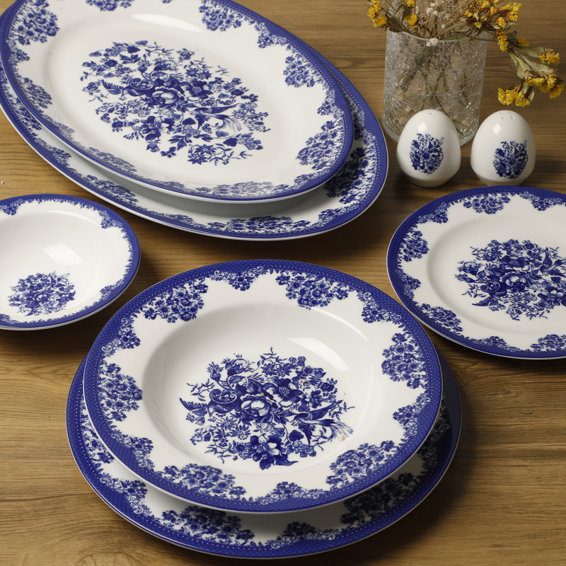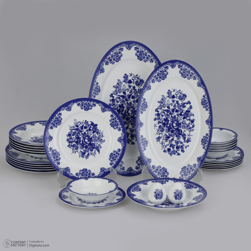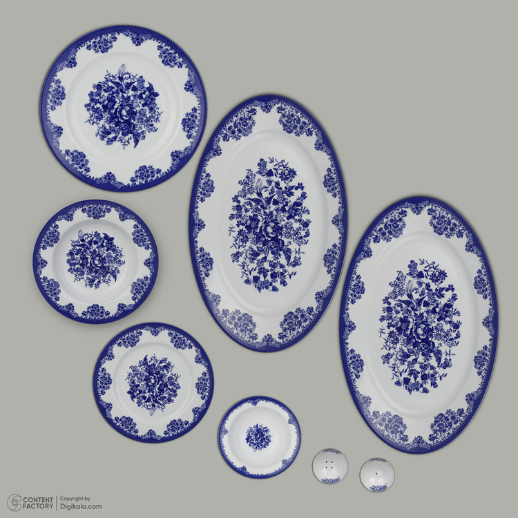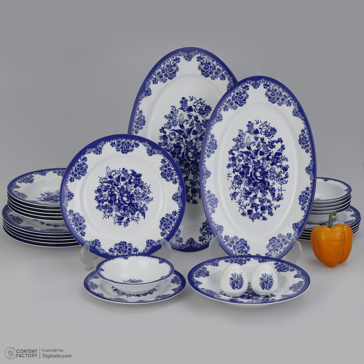 اقلام سرویس: دیس , بشقاب غذاخوری , بشقاب خورشخوری , پیشدستی , نمکپاش و فلفلپاش , پیاله