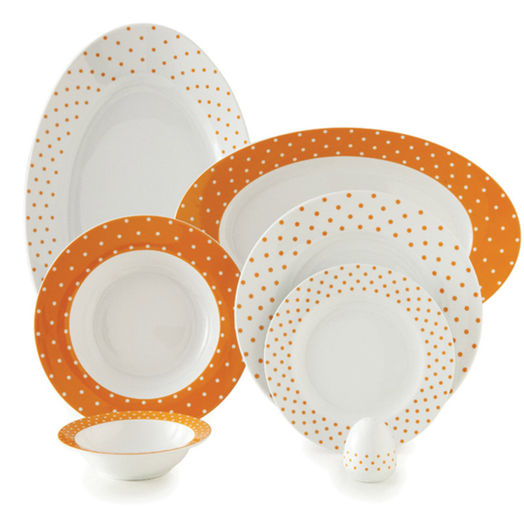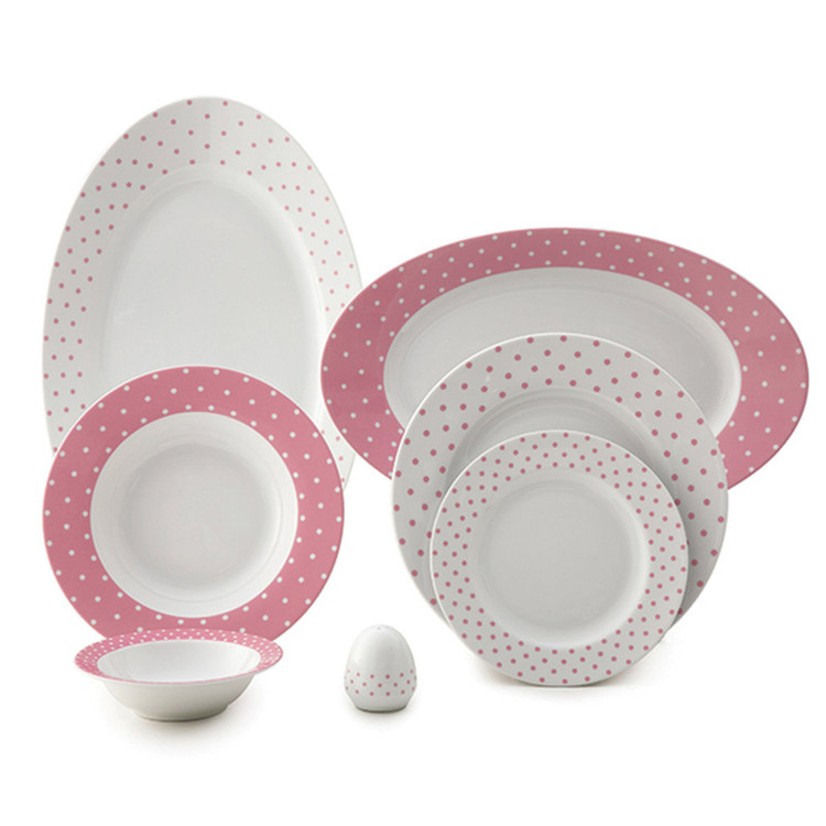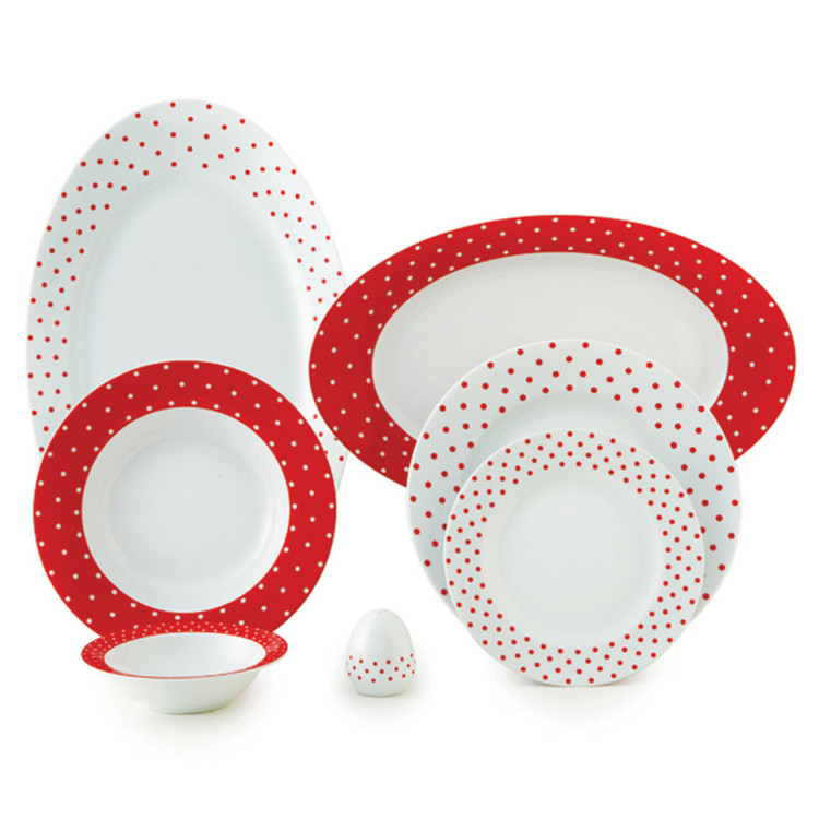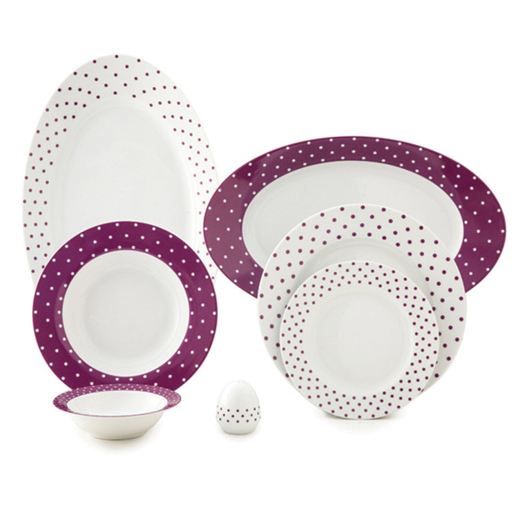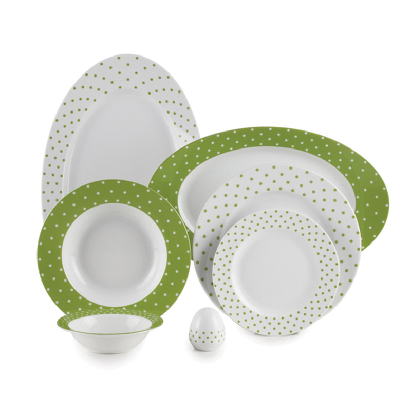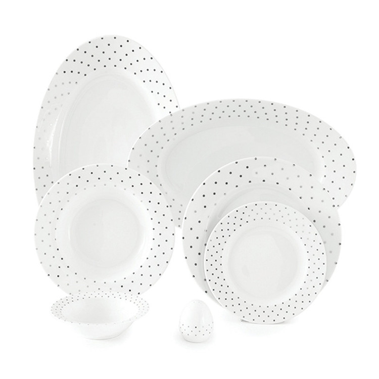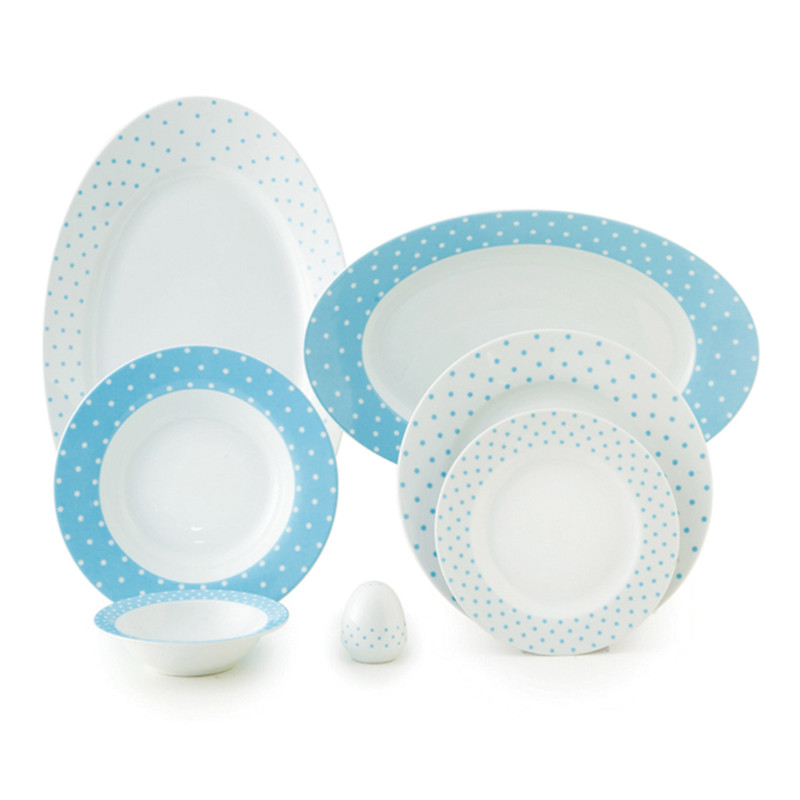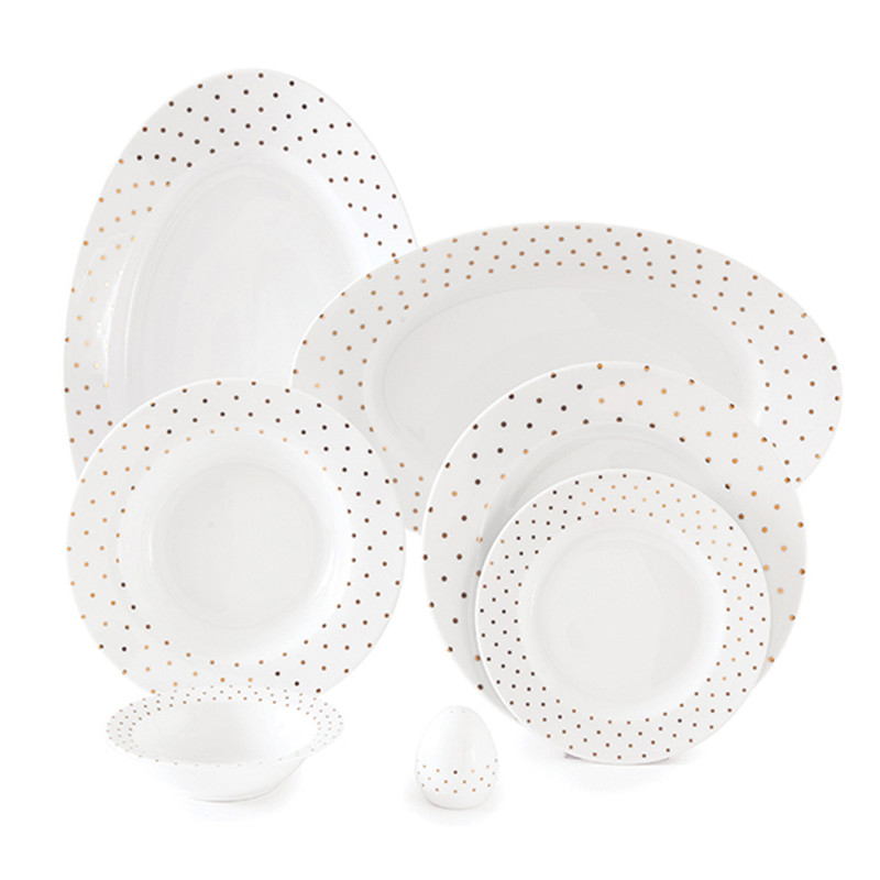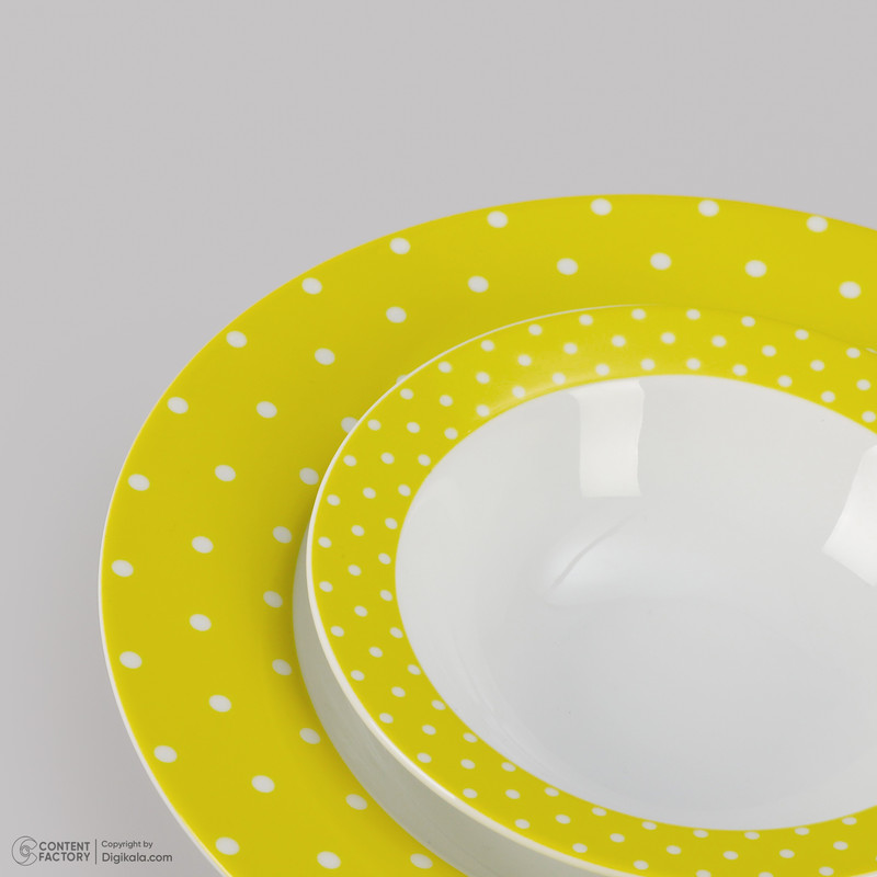 اقلام سرویس: دیس , بشقاب غذاخوری , بشقاب خورشخوری , پیشدستی , نمکپاش و فلفلپاش , پیاله